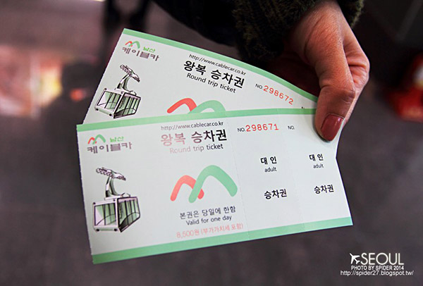 纜車來回票價W8,500/人