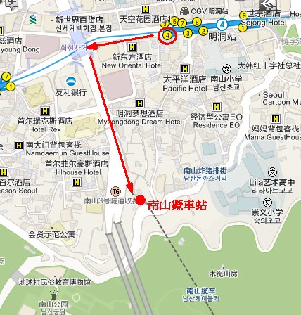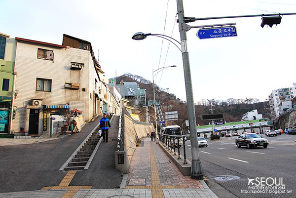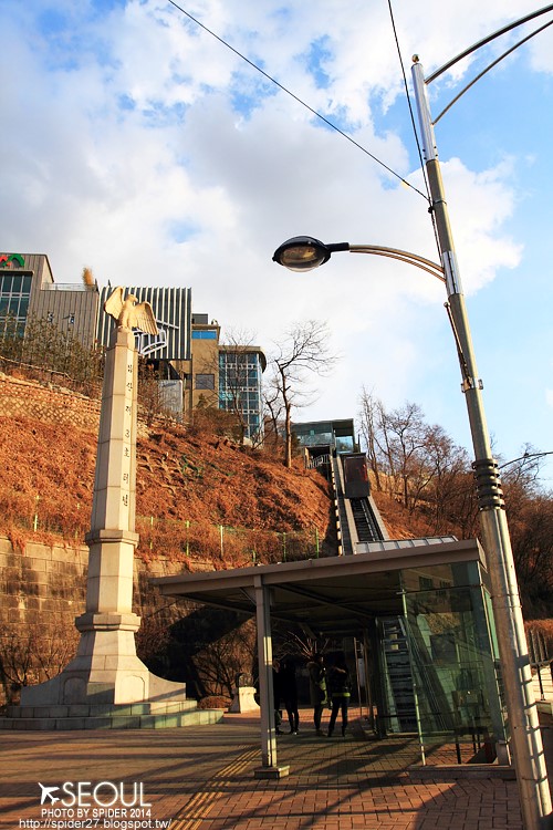 幾分鐘後就可以抵達上方的南山公園及N首爾塔。