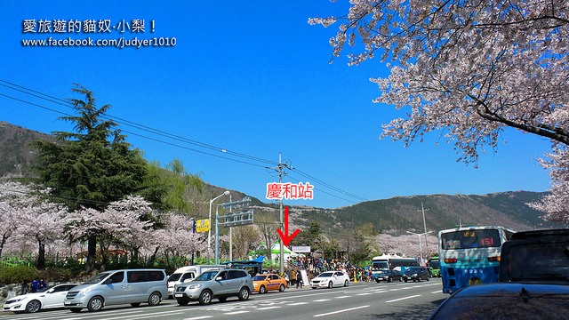 逛完余佐川櫻花道(羅曼史橋)之後,我們就出發去下一個必去賞櫻景點:慶和站경화역
