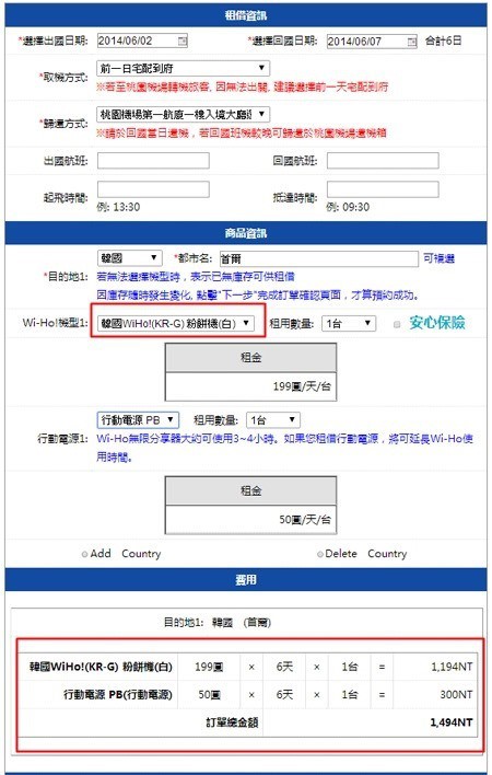 填上出國日期、選擇取機方式(我選擇前一日宅配到府)、歸還方式