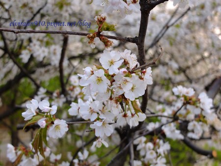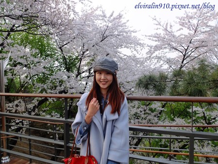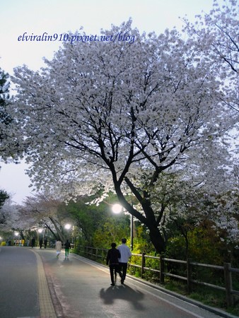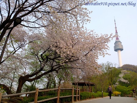 首爾塔旁的步道,如雪片般茂密的白色櫻花,吸引一堆人排隊在她前面準備比YA! 一個人的我使出絕招「幫情侶照相」,鎖定對著鏡頭努力橋位置自拍的情侶,跟他們說「Help you take a picture?」八成以上他們會開心點頭say yes,幫情侶拍下甜蜜片刻後,甜蜜蜜心情之好就會幫孤單的我與櫻花合影一張啦!唷呼呼~