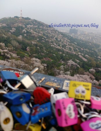 情人鎖橋俯瞰滿山谷的櫻花美極了!冬天來的時候黑漆漆寂寥的山頭,如此大的轉變讓我不禁讚嘆韓國氣候的四季分明,韓國的春天讓我第一次感受到,春天到來的生氣蓬勃與喜悅。