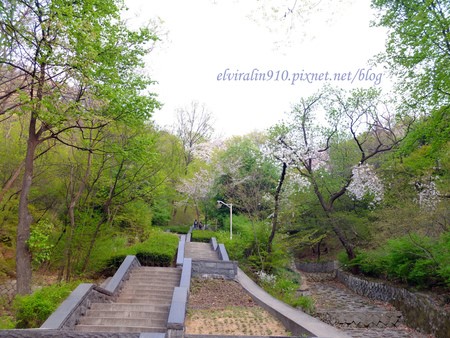 步道入口我看到的第一個景象,哇~好像有點陡唷!現在想想真有點佩服自己的勇氣,平常超懶得運動竟然為了櫻花,毫不猶豫地走了上去!
