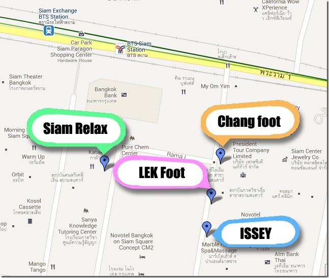 最後布雷克把布雷克知道暹羅商圈soi5~6的平價泰式按摩店整理成一張地圖,有興趣在去泰國曼谷自助行的朋友可以參考。最後大推的還是Siam Relax,第二才是Lek Foot,最後才是Issey Massage,因為沒有去過Chang Foot所以就沒列入排名了。