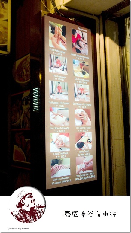 Lek Foot Massage的價位也是一整個大便宜,泰式腳底按摩1hr才$300Baht;泰式按摩全身1hr才$250Baht,按摩+藥草球1hr也才$300Baht,比起在ASIA HERB Association價格只有他們的一半,但是這兩家的市場訂位本來就一樣了,Lek Foot Massage主要是逛街累了走進來放鬆,針對短時間的泰式按摩;ASIA HERB Association比較像是一整個上午或下午在享受放鬆的療程。