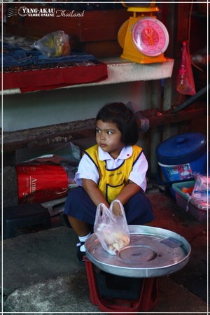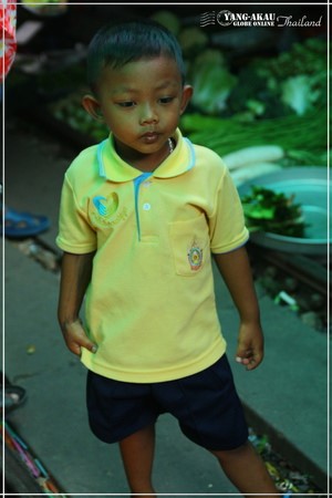 市場裡面有許多小朋友,瞧左邊這個小女孩,姿勢豪邁,眼角流露出銳利精明的神情,還頗有老闆娘的架式哩~另一個則是跟著媽媽出來買菜的小男孩,穿著小小polo衫真是可愛~~