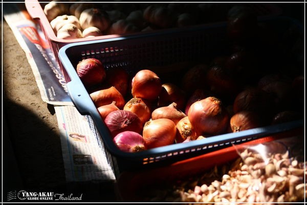 這個市場的光線還真不錯,陽光穿透層層棚架,灑落在地上的菜籃裡。藍子裡的洋蔥一顆一顆圓滾滾的,這光線之下給人的感覺是圓滿而豐饒。