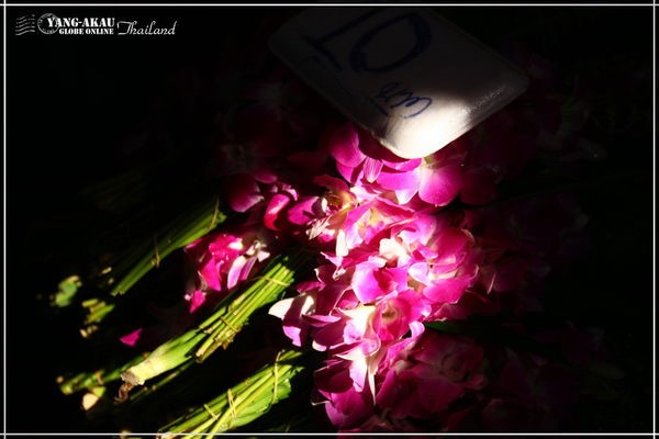 另外一攤賣的是泰國國花石斛蘭。泰國人很愛用這種蘭花妝點他們的生活,一大把才10TB,真是有夠便宜的!蘭花也是沐浴在金色陽光裡,給人另一種繽紛喜氣的感受。