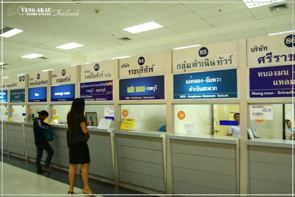曼谷巴士南站是一個巨大的巴士站,規模遠比曼谷北站或曼谷東站大得多,有幾百個售票窗口。往美功的是在85號窗口,公車996號。這個巴士站有很多飲食商店,KFC、Mister Doner之類的,不怕沒東西吃。