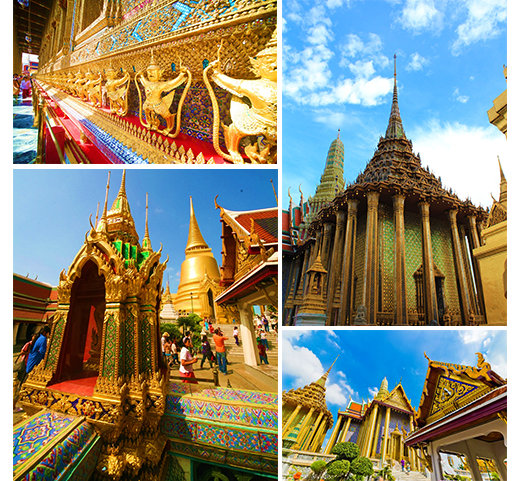 大多數觀光客在泰國旅遊的第一站都屬意泰皇皇宮,因為它不僅是一個觀光點,更是曼谷的標誌。這座皇宮由白色的宮牆圍繞著,佔地約一平方英哩。此皇宮建於 1782 年,包含了數棟建築,雕樑畫棟,美不勝收。至於玉佛寺,正是位於宮內的皇家廟宇,寺中供奉著玉佛,是泰國最莊嚴的佛像。