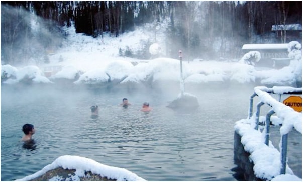 珍娜溫泉是所有欣賞極光的著名城市中,最接近北極圈的城市,它比加拿大的白馬市緯度更高,最大的特色就是可以在極地裡泡溫泉,已經有100多年的歷史