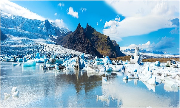 世界最大最著名的冰河湖,晶瑩藍色的透明光澤藉由千年浮冰閃閃動人,神秘感在清澈如鏡的絕美湖面上飄散,許多電影在此取景,如鐵達尼號、古墓奇兵及007系列電影等。