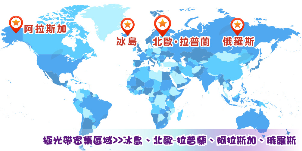 *探訪所有極光地點會因天氣條件而有所變動,且當地自然狀況影響極光出現,無法保證觀測
