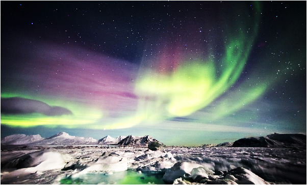 擁有奇幻色彩的極光,源自太陽表面的黑子活動噴發出高能量的帶電粒子,形成太陽風吹向地球,受地磁線牽引靠近南北極移動,跟氣體分子碰撞,釋放發出的光就是極光。大多數的極光,都是發生在極圈附近,稱為「極光帶」。