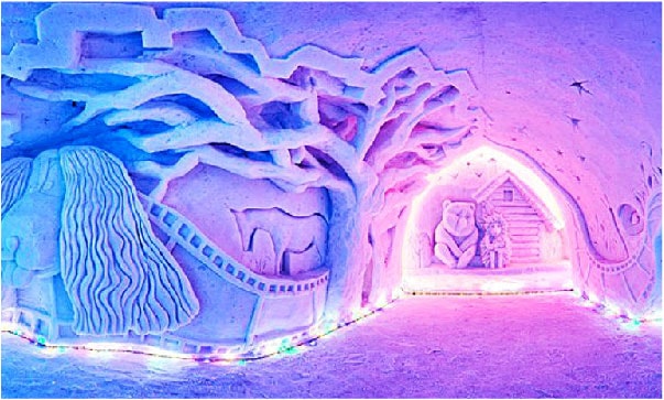 希比內山脈中的滑雪勝地-基洛夫斯克-Snow village參觀雪中奇蹟-雪迷宮,穿梭在主題冰雕的冰雪童話中。另有刺激好玩的 雪上甜甜圈、香蕉船及瘋狂的雪上摩托車。